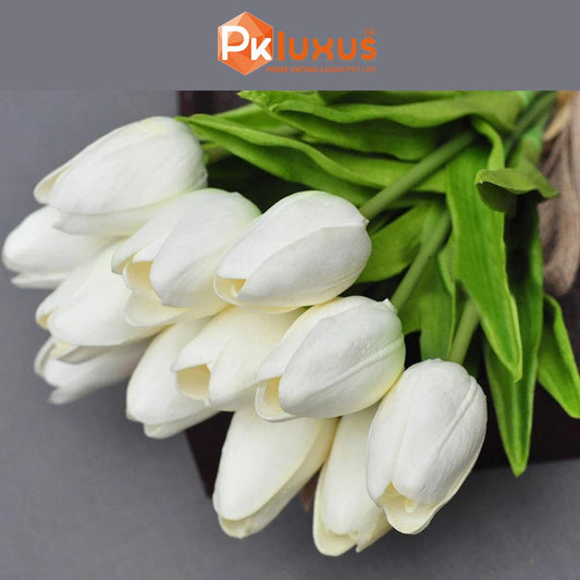 10 Stems Of Real Touch White Tulips Made With Rubber By PK LUXUS™